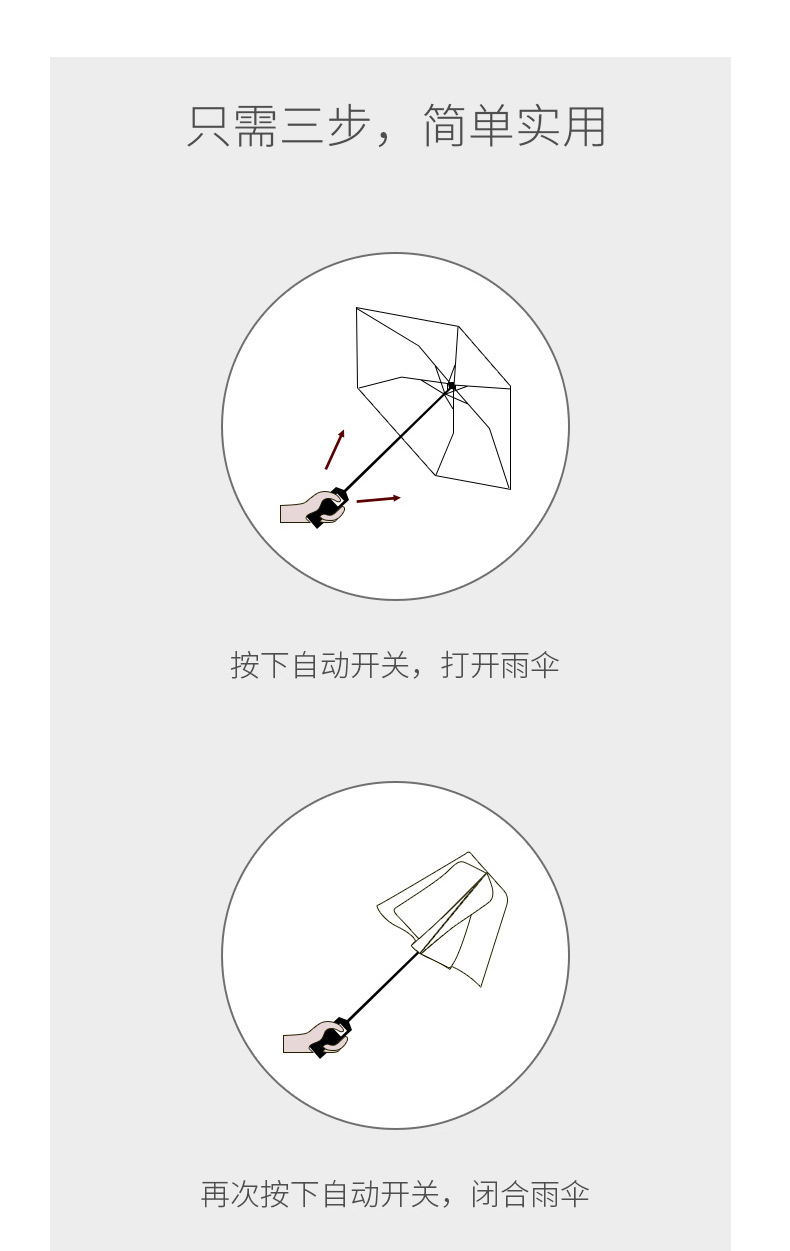 【傘頭】:自動開收塑膠手柄