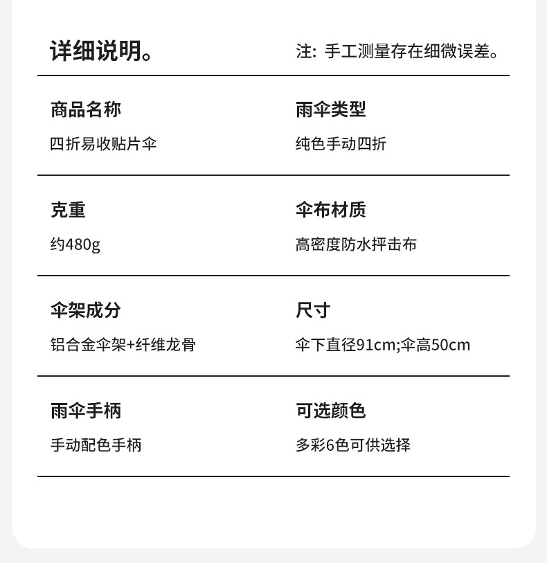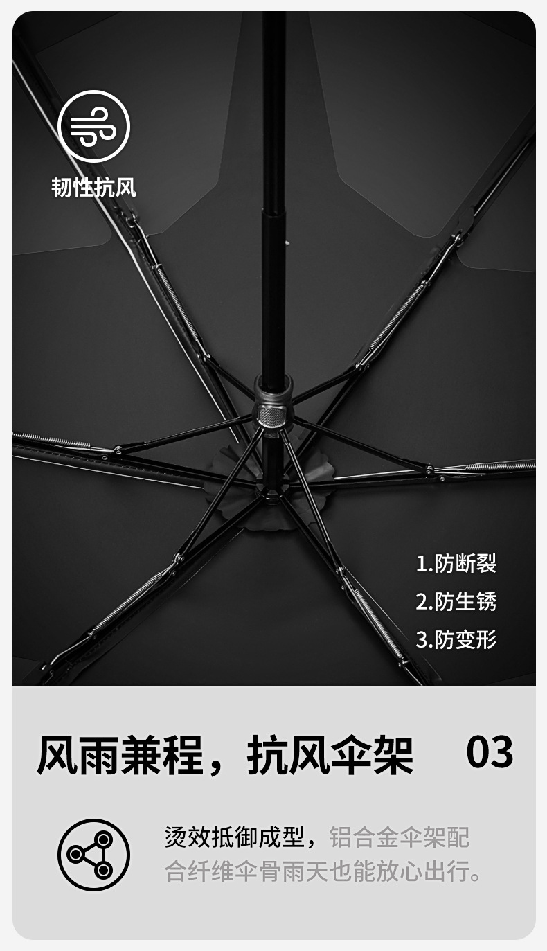 【骨架】:19寸x6k四節手開記憶折疊纖維骨傘