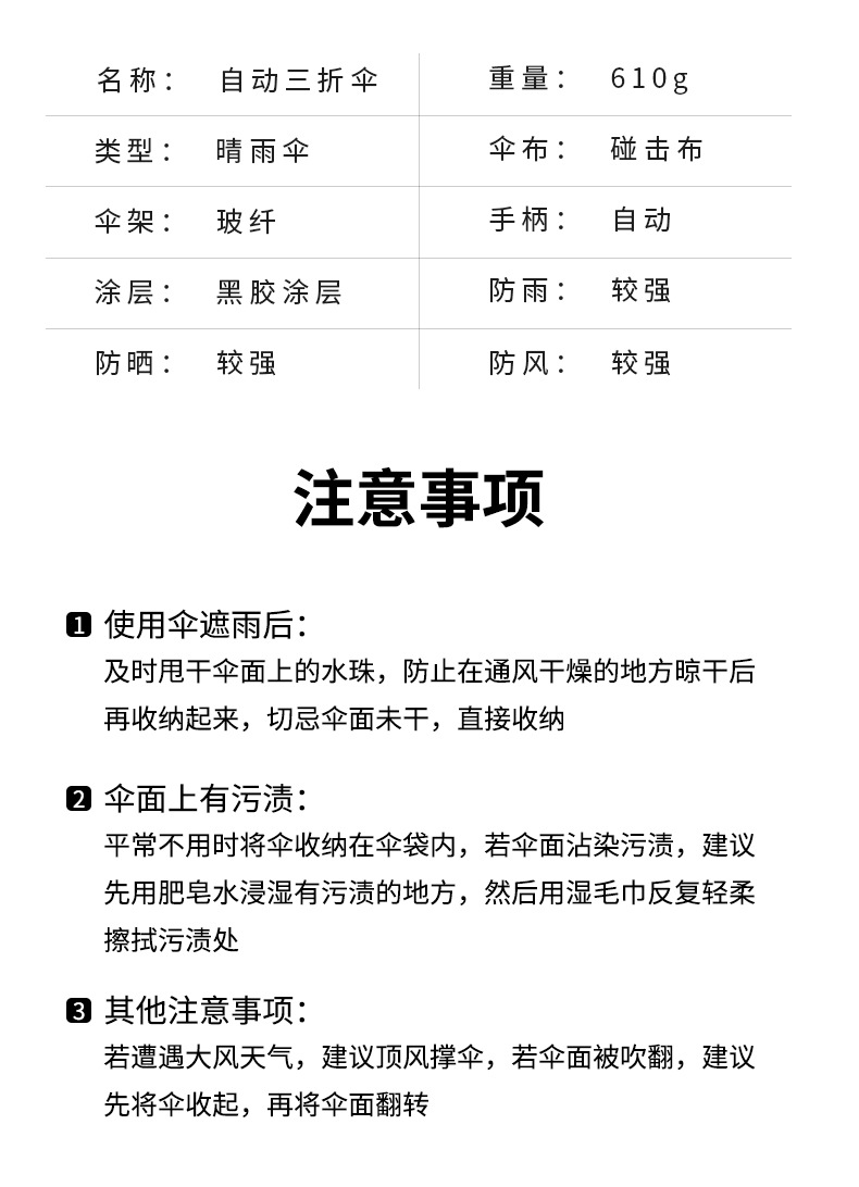 【傘頭】:配色自動開收塑膠手柄