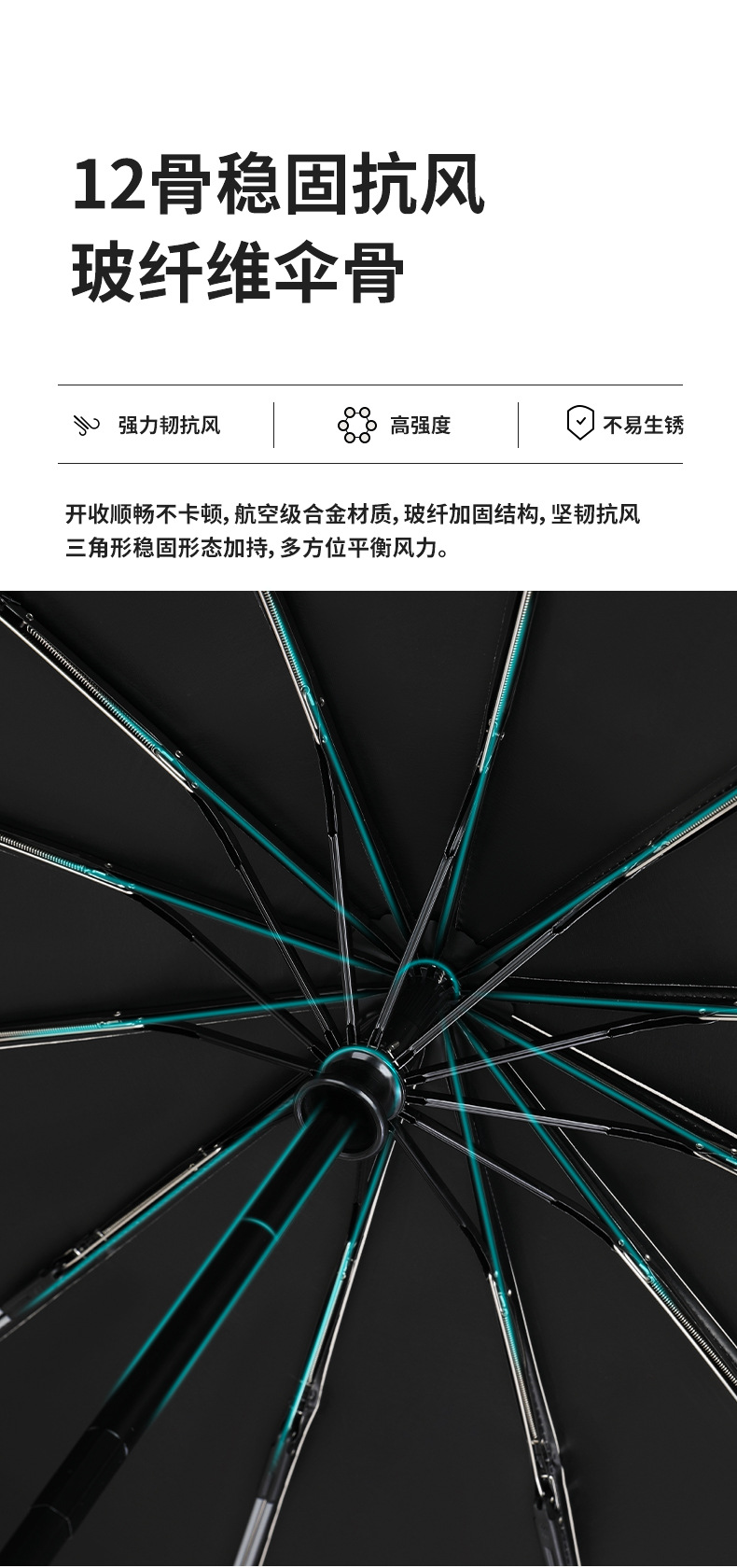 【骨架】:23寸x12k小蝌蚪视频色版全自動開收雙骨防風防雨防曬傘