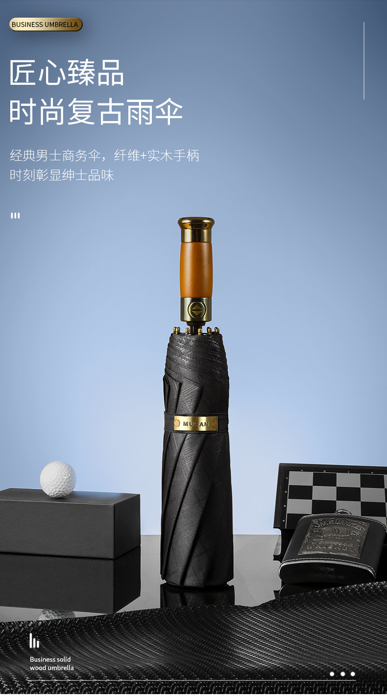 【傘頭】:實木自開收手柄